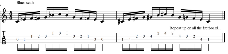 Adding to this scale the fourth degree increased (the blue note) you get the blues scale: