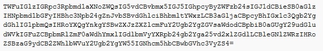 The encoded output is completely unreadable but Base64 encoding is easier to identify than a lot of encoding schemes, usually because of its padding character.