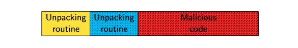 A technique to hide the real code of a program through one or more layers of compression/encryption: at run-time the unpacking routine restores the original code in memory and then executes it