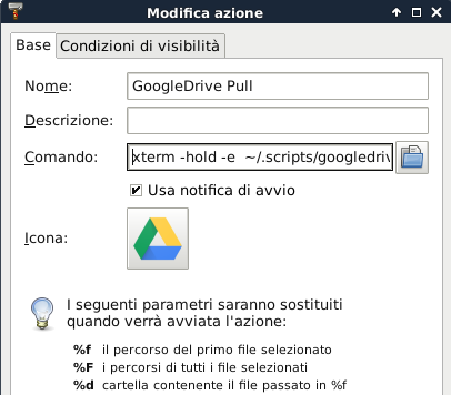 Simply create one custom action named ‘GoogleDrive Pull’ with this command line: