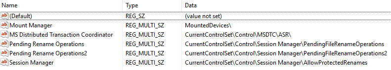 - KeysNotToRestore — Provides the names of registry keys and values that backup applications should not restore.