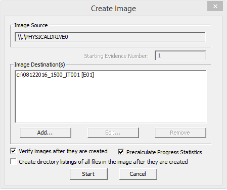 - Provide a name for the image within the Image Filename box. Usually I use this naming convention: DATE_TIME_HOSTNAME. (Example: 08122016_1500_WEB001)