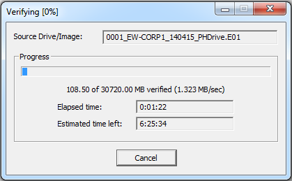 - If the option “Verify images after they are created” was selected in step 16, the verification process starts immediately after the imaging process finishes.