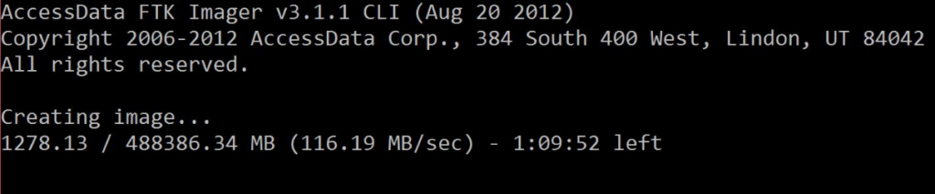 - Connect the external HDD into the target system that has FTK Imager Command Line folder residing on it.