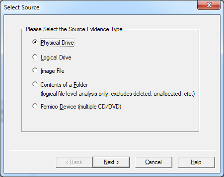 - Select Physical Drive as the source evidence type. Click on Next.