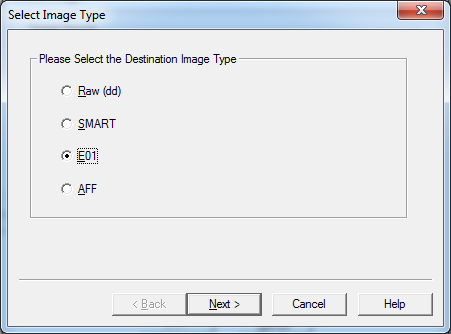 - Select E01 as the destination image type and click on Next.