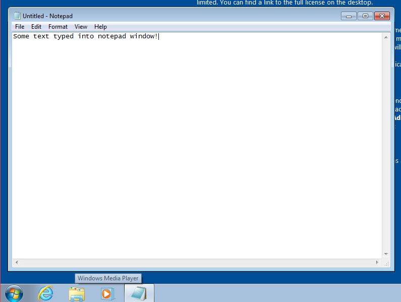 I've started a Windows 7 virtual machine on Virtualbox, and on this VM i've opened the notepad and written some text: