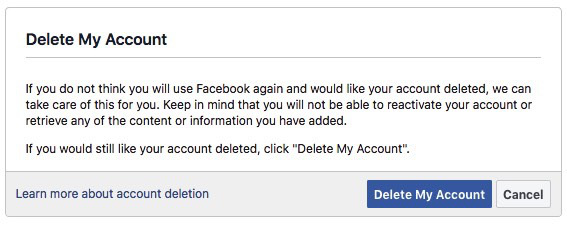 After you’ve saved your data, go to the Facebook’s Delete My Account page and start the process:
