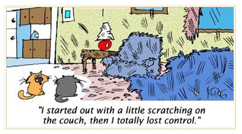 In the wild, cats needed sharp claws for climbing, hunting, and self-defense. Sharpening their claws on nearby surfaces kept them conditioned and ready, helped stretch their back and leg muscles, and relieve some stress, too. So, it's not that Grizmo hates your couch, chair, ottoman, pillows, curtains, and everything else you put in her environment. She's ripping these things to shreds and keeping her claws in tip-top shape because this is exactly what her ancestors did in order to survive.