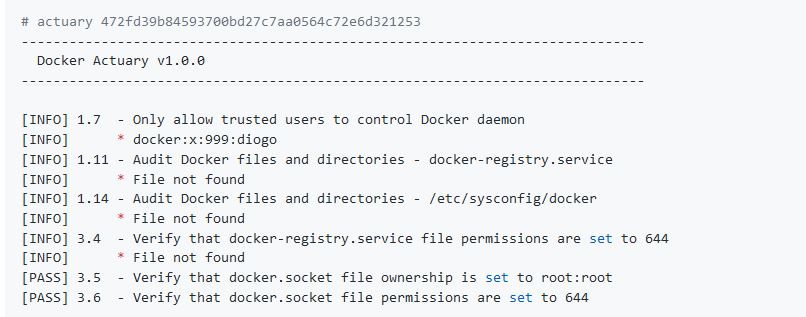 Actuary is an application that checks for dozens of common best-practices around deploying Docker containers in production, that takes in a checklist of items to check, and automates the running, inspecting and aggregation of the results.