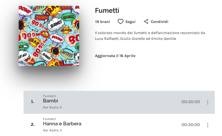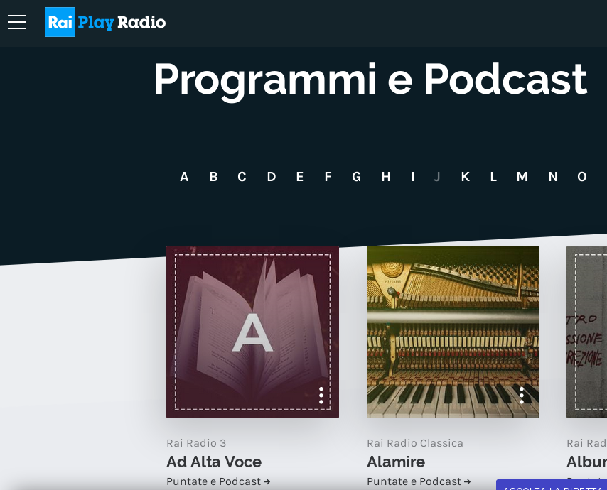 A special section is dedicated to radio channels, with a lot of good (italian) audio tracks: documentary, radio fictions, talk shows, audiobook.