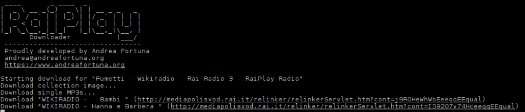 L$ ./RaiPlayDL.py "https://www.raiplayradio.it/playlist/2018/01/William-Shakespeare-Romeo-e-Giulietta-61324db1-8ff4-4aea-8792-35aad7dfff99.html"