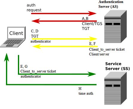 - Client requests an authentication ticket (TGT) from the Key Distribution Center (KDC)