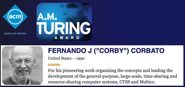 Multics, in turn, was essentially Version 2 of an Massachussets Institute of Technology (MIT) operating system called CTSS, short for Compatible Time-Sharing System.The man behind CTSS and Multics, the man who did the groundwork that made Unix happen, was Fernando José Corbató, better known simply as Corby.