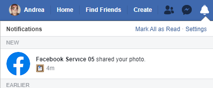I've received a notification sayng that a account named Fəcebook Servıce 05 (pay attention to ə character) the shared one of my photos (in this case, my profile photo).