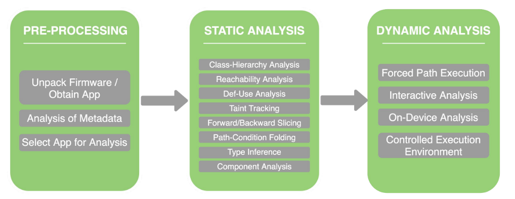 According with a brief paper published by Kryptowire [2], the analysis workflow is composed by 3 steps: