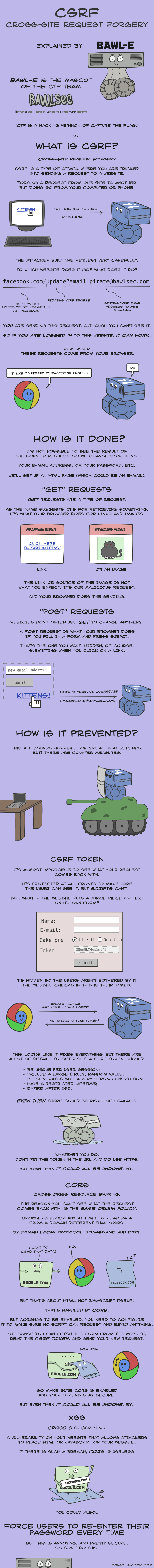 Cross-Site Request Forgery (CSRF) is a type of attack that allows a malicious web site, email, blog, instant message, or program to causes a user’s web browser to perform an unwanted action on a trusted site, when the user is authenticated.