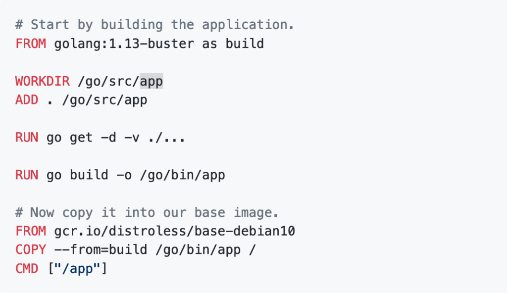 However, by using Google’s “distroless” approach we can build small and secured runtime images.